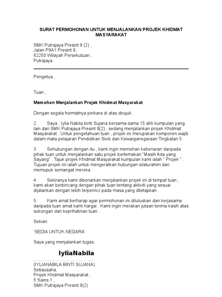 Surat Kebenaran Menjalankan Projek Khidmat Masyarakat Pdf