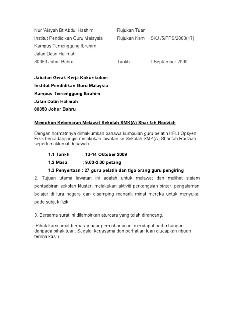 . Tujuan kami mengadakan lawatan ini adalah untuk. Gerakan pramuka gugus depan 09 011 09 012. Contoh surat permohonan menggunakan kenderaan jabatan cute766.